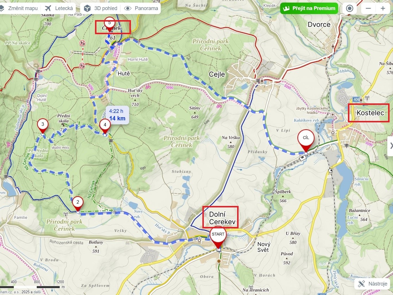Dolní Cerekev, NS Čeřínek, Přední skála, Hutě, Čeřínek, Cejle, Kostelec u Jihlavy