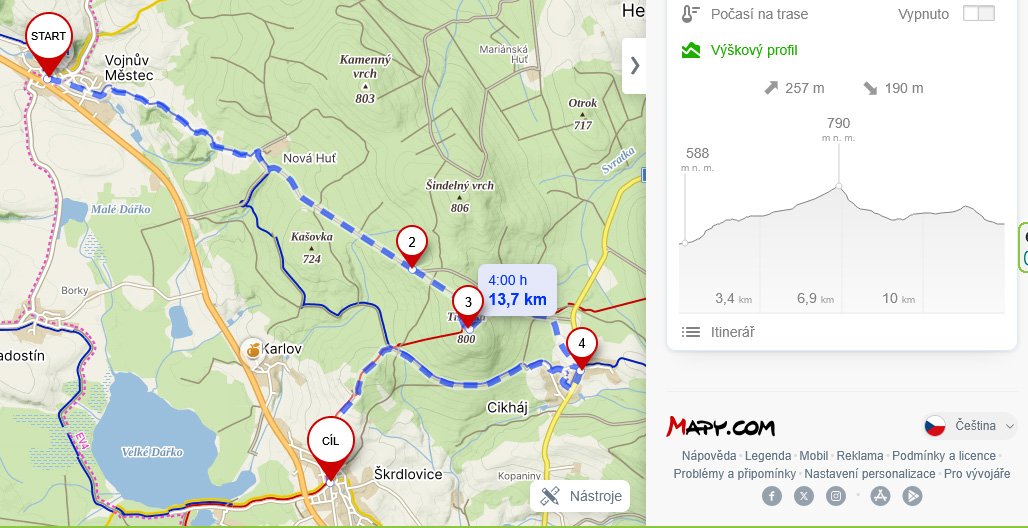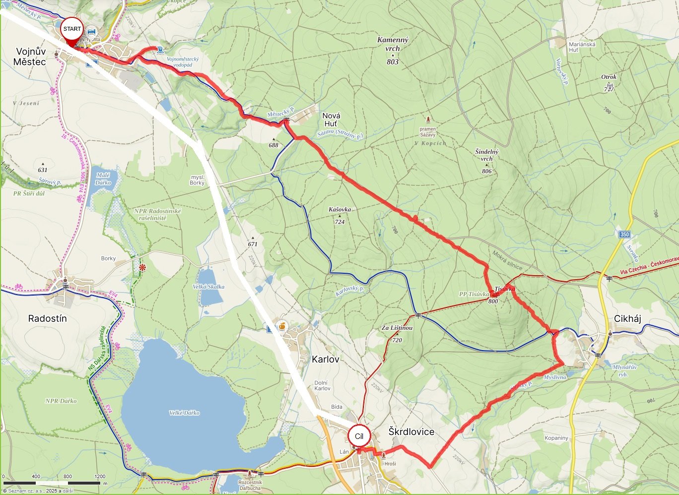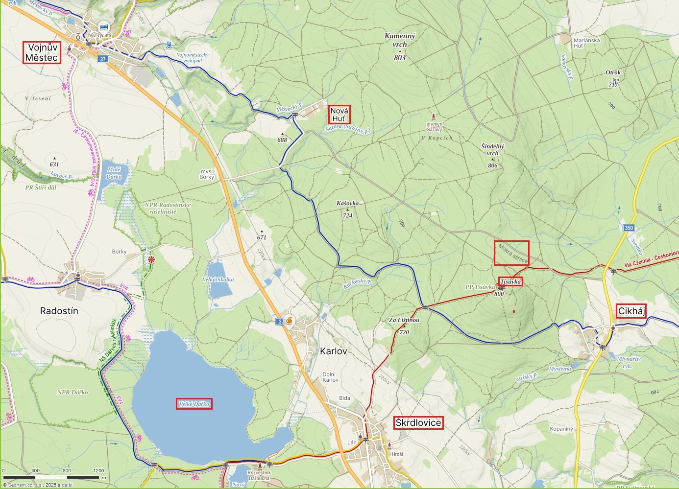 Vojnův Městec, Nová Huť, Mokrá silnice, Tisůvka. Cikháj, Škrdlovice