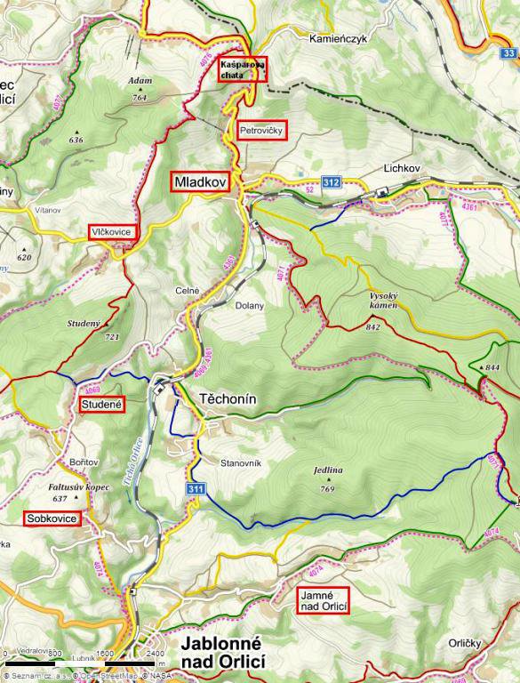 Jamné nad Orl., Sobkovice, Vlčkovice, Kašparova chata, Mladkov