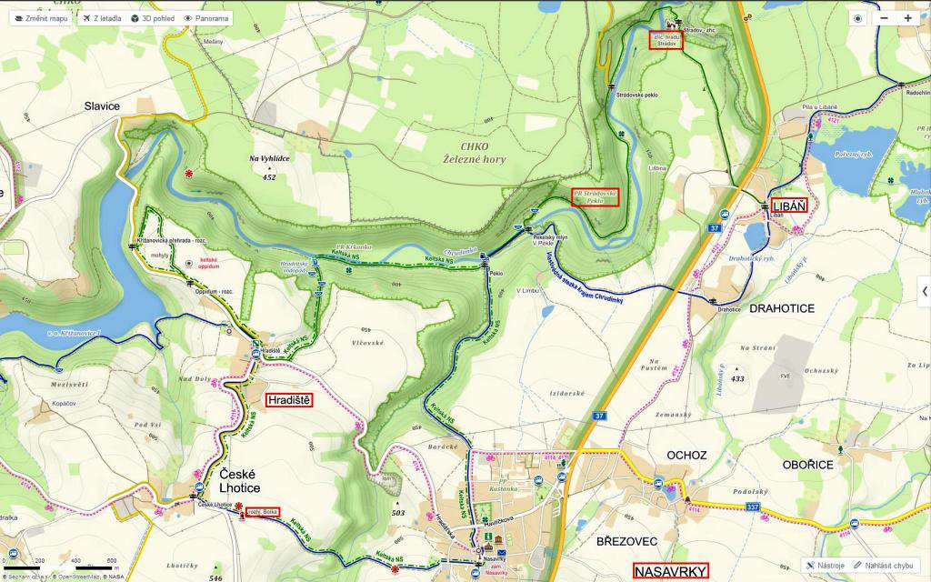 Libáň, Strádov, Peklo, Hradiště, Boika, Nasavrky