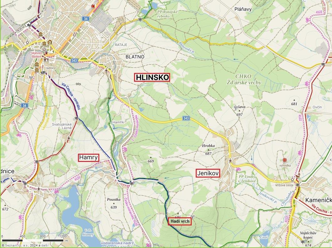 Hlinsko, Jeníkov, Hadí vrch, Hamry, Hlinsko