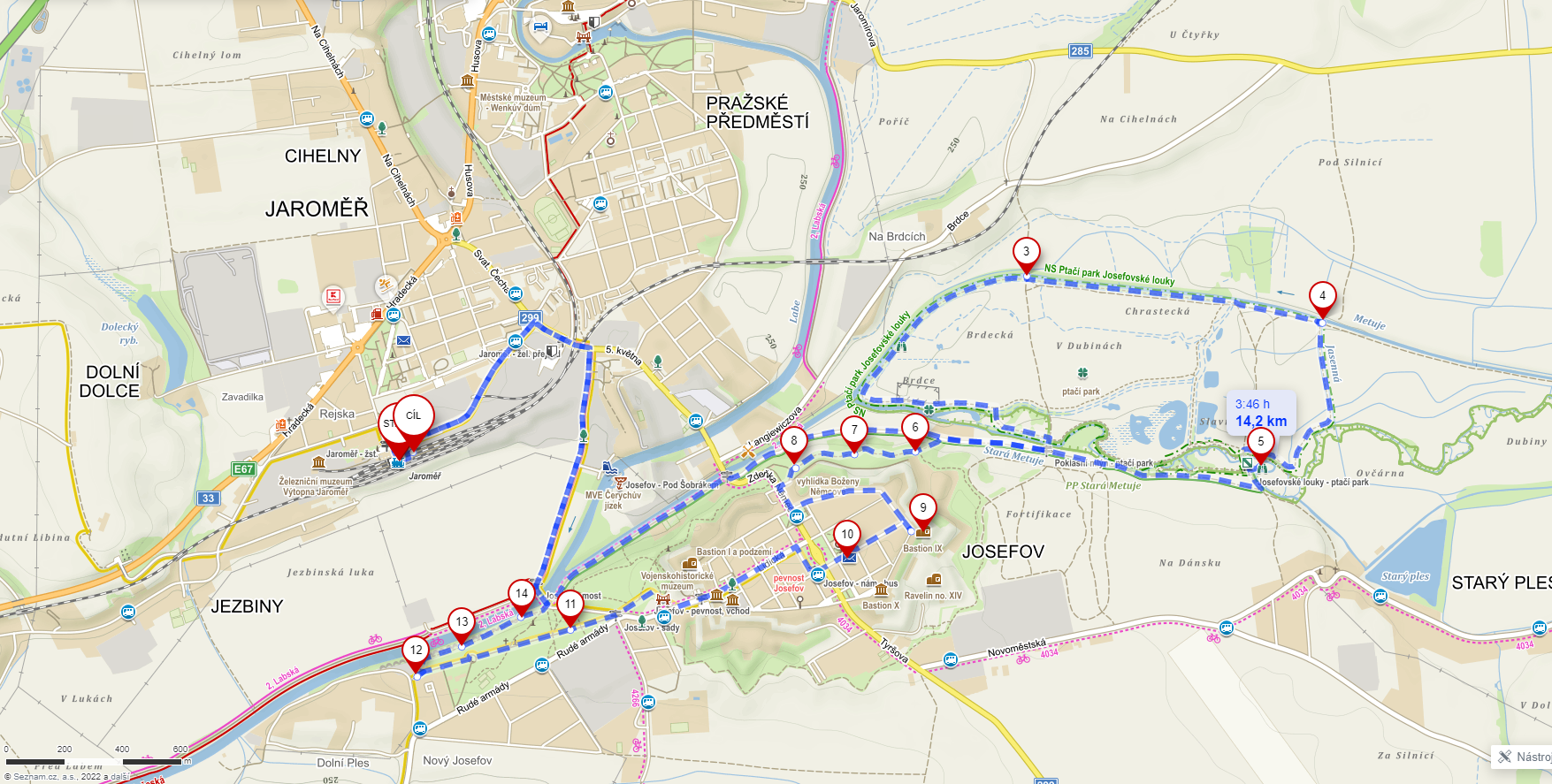 Jaroměř, soutok Labe s Metují, NS Ptačí park Josefovské louky, Pevnost Josefov, Josefov, park, Jaroměř