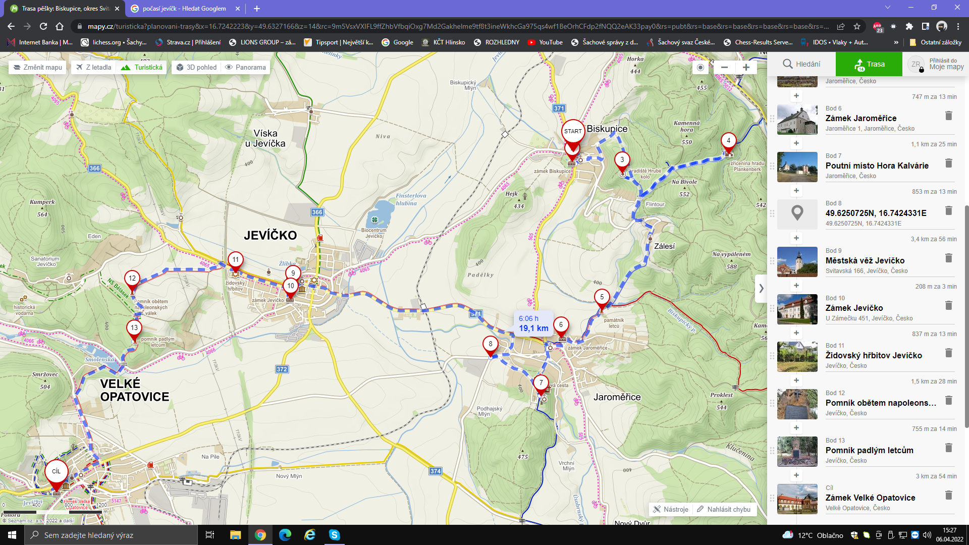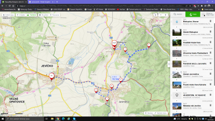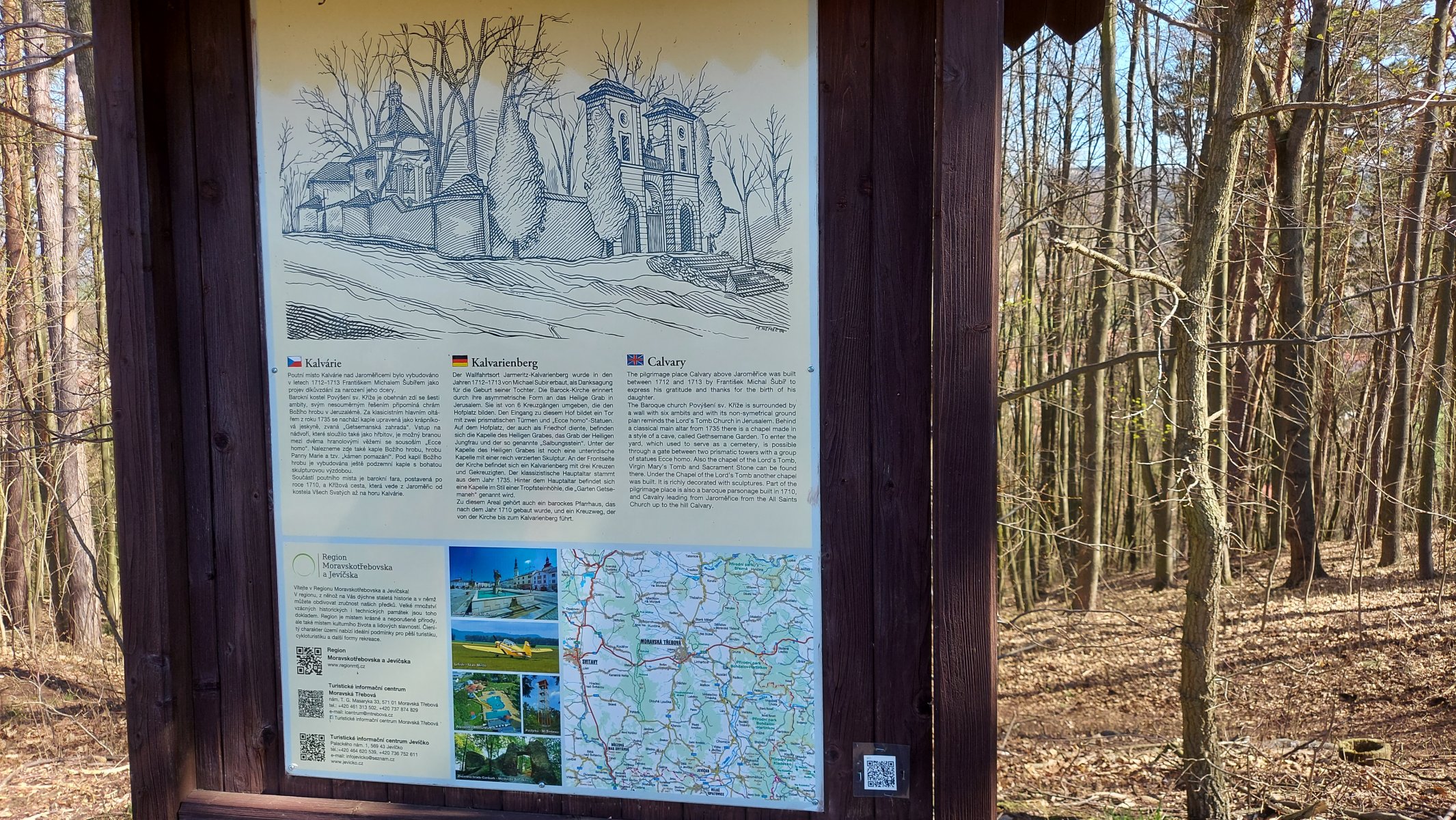 Jevíčko - zámek, Měská věž, Jaroměřice - Poutní místo Hora Kalvárie, zř.Plankenberg, Biskupice - zámek