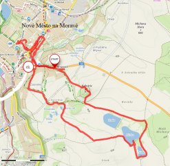 Nové Město na Moravě, Horácká galerie, soutok Bobrůvky a Bezděčky (tzv. nespravedlnost všech Bezděčků) hrob J.V. Plevy, Kalvárie (675), rybníky Trnka, Křiva a Němec, Zimbura