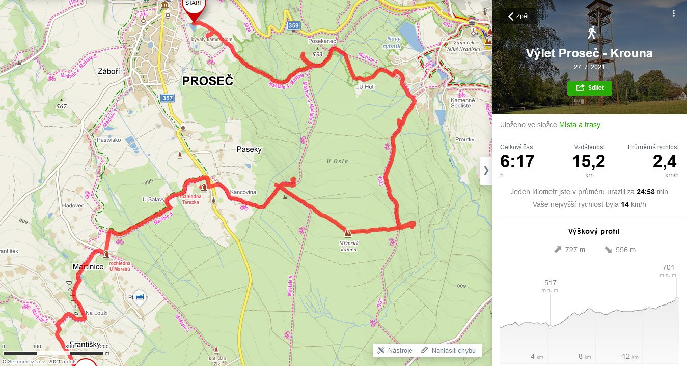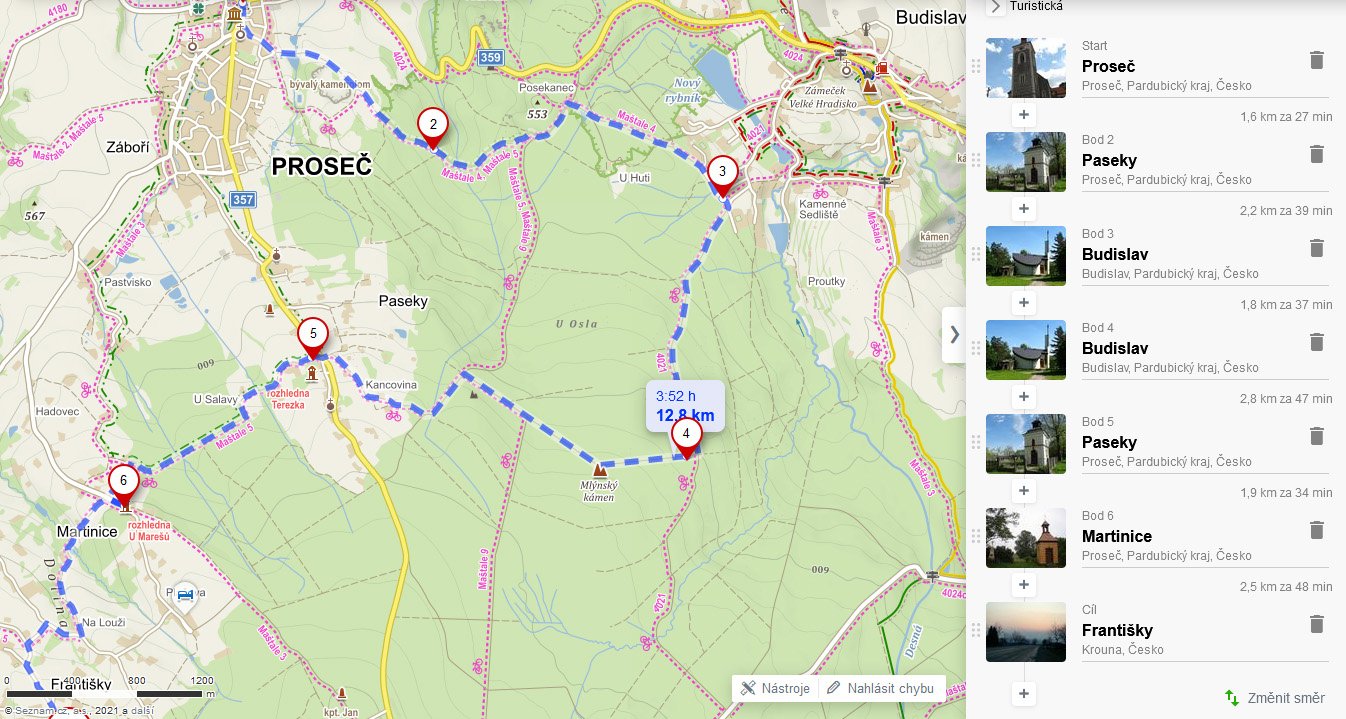 Proseč, Budislav, Mlýnský kámen, stud.Prdlavá, rozhl.Terezka, rozhl.a rest.U Marešů, Martinice, Františky