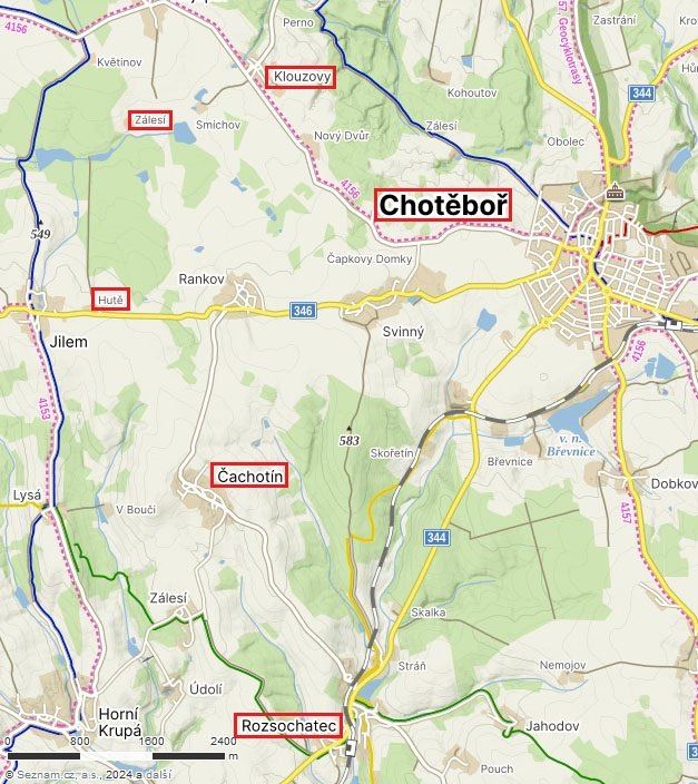 Rozsochatec, Čachotín, Hutě, Klouzovy, Zálesí, Chotěboř
